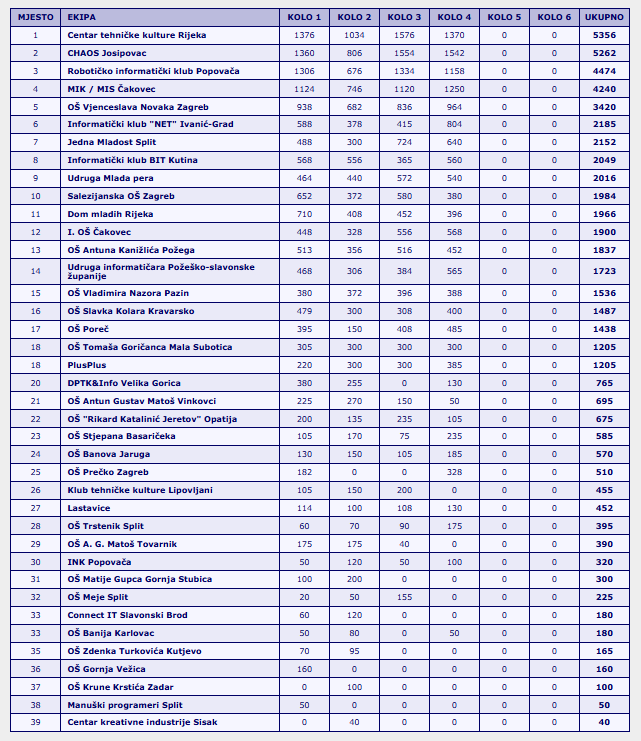 Nakon četiri kola Hrvatske logo lige dva člana Zajednice tehničke kulture Sisačko-moslavačke županije, Robotičko informatički klub Popovača i Informatički klub BIT Kutina među vodećim su ekipama.
